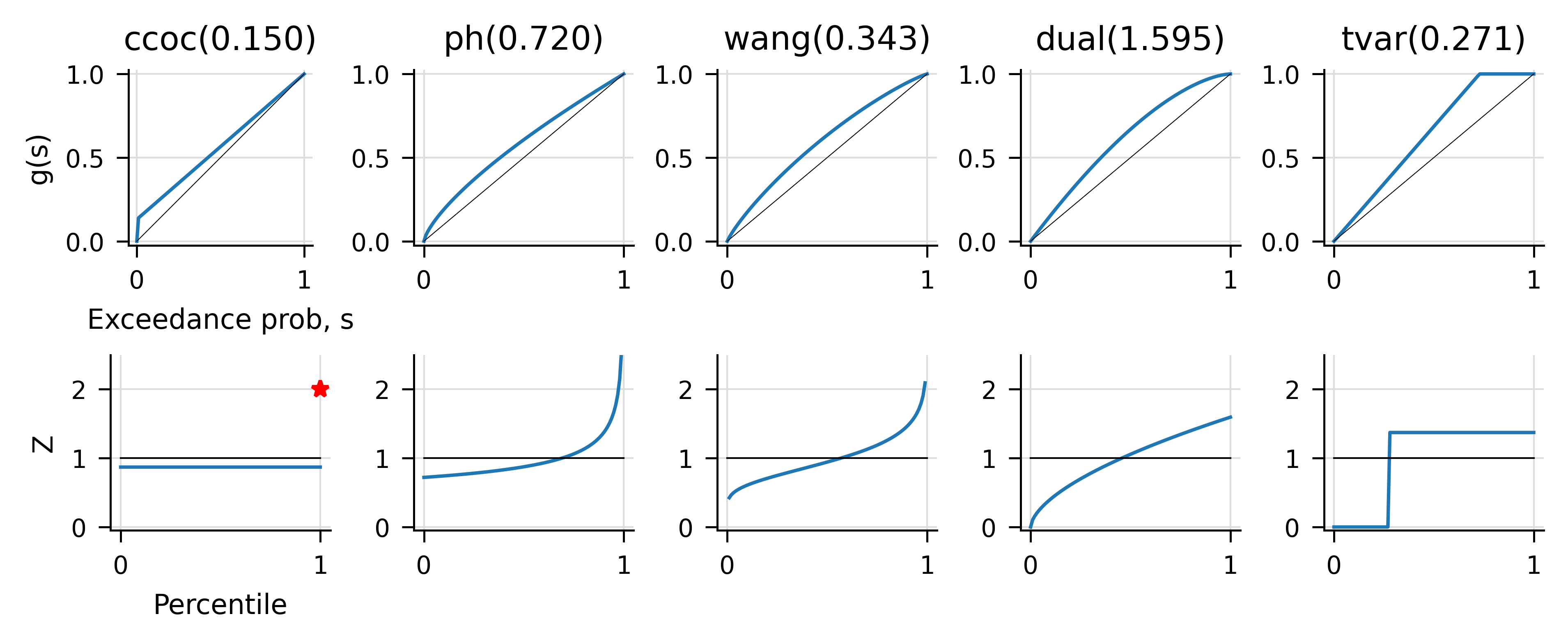 # calibrate to 15% return at p=100% capital standardwport.calibrate_distortions(Ps=[1], COCs=[.15]);