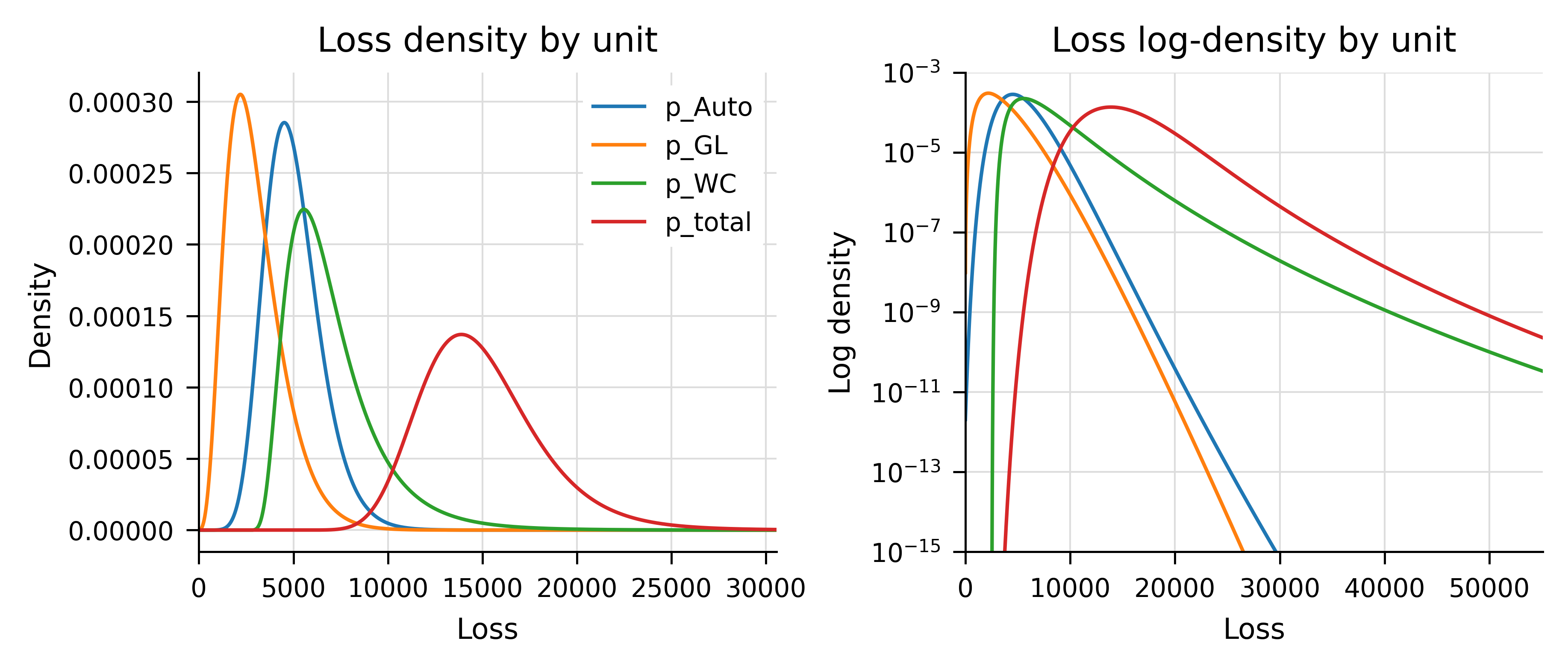 ---format: pdf: default html: defaultjupyter: jupytext: text_representation: extension: .qmd format_name: quarto format_version: '1.0' jupytext_version: 1.16.4 kernelspec: display_name: Python 3 (ipykernel) language: python name: python3---```{python}#| echo: false#| label: spacerpass```# Calculations with `Aggregate` {#sec-Calcs-with-Aggregate}*Example calculations using Python and R.*This chapter reproduces many of the exhibits from the main text using Python and the `aggregate` package. It also describes how to extend to more realistic examples. Throughout, we have included only terse subsets of code so the reader can focus on the results and the output. Instructions for obtaining the full code are provided below.## `Aggregate` and Python`aggregate` is a Python package that can be used to build approximations to compound (aggregate) probability distributions quickly and accurately, and to solve insurance, risk management, and actuarial problems using realistic models that reflect underlying frequency and severity. It delivers the speed and accuracy of parametric distributions to situations that usually require simulation, making it as easy to work with an aggregate (compound) probability distribution as the lognormal. `aggregate` includes an expressive language called DecL to describe aggregate distributions.The `aggregate` package is available on [PyPi](https://pypi.org/project/aggregate/), the source code is on GitHub at <https://github.com/mynl/aggregate>, and there is extensive [documentation](https://aggregate.readthedocs.io/en/latest/). The `Aggregate` class and DecL lanaguage are described in @Mildenhall2024. There is also an extensive series of videos introducing various capabilities available on [YouTube](https://www.youtube.com/playlist?list=PLQQxycbewjqMDmw0hfZdB6Rzm60Qcq3Ao).## `Aggregate` and RPython packages can be used in R via the reticulate library. Python and R code can also be mixed in RMarkdown (now Quarto) files. This [short video](https://www.youtube.com/watch?v=jA9rVMHVqI0) explains how to use `aggregate` from R.## Reproducing the code examples {#sec-setup-code}To reproduce the Python code examples, you must set up your environment and then install `aggregate` using``` pythonpip install aggregate```The formatting of the examples relies on `greater_tables`, which can be installed in the same way. The installation process will also install several standard packages, such as `numpy` and `pandas`, that it depends on. If you get an error message about other missing packages, you can install them with `pip`. All the code in the monograph runs on `aggregate` version 0.24.0 and should run on any later version. If you have an older version installed, you can updated it with `pip install -U aggregate`.Once `aggregate` is installed, start by importing basic libraries. The next code block shows the relevant `aggregate` function. The class `GT` from `greater_tables` is used to format DataFrames consistently.``` pythonfrom aggregate import ( Portfolio, # creates multi-unit portfolios make_ceder_netter, # models reinsurance Distortion # creates a Distortion function)from greater_tables import GT # consistent table format``````{python}#| echo: false#| label: lstx-setup-code%run prefob.py# column ordering to match remainder of Monographjam_order = ['L', 'a', 'Q', 'P', 'M', 'COC']```\medskip**Online resources.** Complete code samples can be extracted from the online version of the monograph, available at <https://cmm.mynl.com/>. Each code block has a small copy icon in the upper right-hand corner. The code blocks on each page can all be shown or hidden using the `</>Code` control at the top of the page. To download the original qmd file, use the View Source option under the same control. Alternatively, the entire Quarto (previously RMarkdown) source can be downloaded from GitHub at https://github.com/mynl/CapitalModeling (CAS TO INSERT OWN LINK).## Reproducing the discrete example {#sec-sde}### Input data and setupThe InsCo example running through this monograph is based on the 10 events shown in @tbl-10-sims, which reproduces @tbl-dupe-x, and adds the mean and CV. For reference, here is the code to create the underlying dataframe.```{python}#| echo: true#| label: lstx-loss-sampleloss_sample = pd.DataFrame( {'A': [ 5, 7, 15, 15, 13, 5, 15, 26, 17, 16],'B': [20, 33, 13, 7, 20, 27, 16, 19, 8, 20],'C': [11, 0, 0, 0, 7, 8, 9, 10, 40, 64], })loss_sample['total'] = loss_sample.sum(axis=1)loss_sample['p_total'] =1/10print(loss_sample)``````{python}#| echo: false#| label: tbl-10-sims#| tbl-cap: The 10 equally likely simulations underlying the basic examples.loss_sample = pd.DataFrame( {'A': [ 5, 7, 15, 15, 13, 5, 15, 26, 17, 16],'B': [20, 33, 13, 7, 20, 27, 16, 19, 8, 20],'C': [11, 0, 0, 0, 7, 8, 9, 10, 40, 64],'p_total': 1/10 })loss_sample['total'] = loss_sample.iloc[:, :3].sum(1)# add mean and CVwgs = loss_sample.copy()wgs_ = wgs.copy().drop(columns='p_total')wgs_['total'] = wgs.drop(columns='p_total').sum(1)wgs2 = wgs_.copy()wgs2.loc['EX', :] = wgs_.mean(0)wgs2.loc['EX2', :] = (wgs_**2).mean(0)wgs2.loc['Var', :] = wgs2.loc['EX2', :] - wgs2.loc['EX', :]**2wgs2.loc['CV', :] = wgs2.loc['Var', :]**.5/ wgs2.loc['EX', :]wgs2 = wgs2.drop(index = ['EX2', 'Var'])fGT(wgs2)```Now we create an `aggregate``Portfolio` class instance based on the `loss_sample` simulation output. The next block shows how to do this, using the `Portfolio.create_from_sample` method. `TMA1` is a label, and `loss_sample` is the dataframe created previously. The other arguments specify working with unit-sized buckets `bs=1` appropriate for our integer losses and to use $256=2^8$ buckets, `log2=8`.```{python}#| echo: true#| label: lstx-create-portwport = Portfolio.create_from_sample('TMA1', loss_sample, bs=1, log2=8)```The next line of code displays @tbl-wport, which shows summary output from the object `wport` by accessing its `describe` attribute. The summary includes the mean, CV, and skewness. The model and estimated (